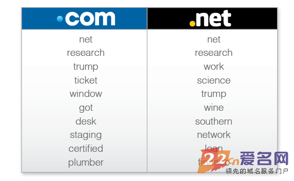 另外,这也是第一次三个域名关键词同时登上com和net域名的热门榜单,它们分别是net、research和trump。