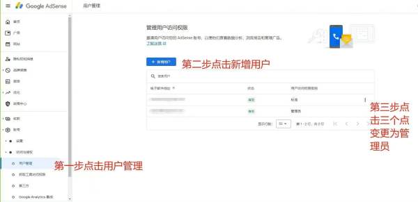Google Adsense账户通过更换管理员(如图),换完后就跟原所有人没有关系了,收款账户也会更换。Google是全球大公司,做违法内容非但收不了广告款,更谈不上投资收益,而做Google Adsense本身也没有任何法律风险。
