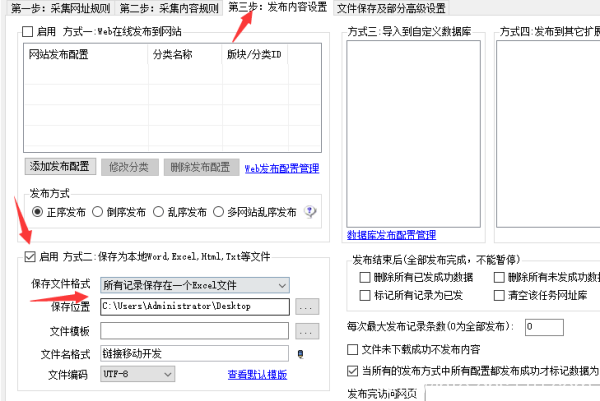 当采集到这些文章的URL后,我们先要在 第三步:发布内容设置 ,将连接保存在桌面处理。